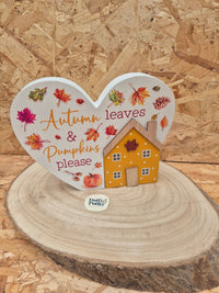 Autumn Leaves Standing Heart Plaque Pumpkins