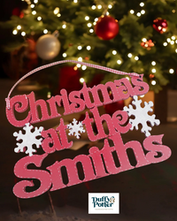 Approx A4 in size our Duffy and Porter wooden hanging signs are a annual favourite both to choose for your own decor and as a gift for others. This year we have left the signs to be freetext so you can create your own personalised touch. "Christmas" is as standard but you add the last (up to) 4 words to the sign...you can have Christmas At the Salon for example, christmas with family, christmas With nana&Grandad, christmas with the Boyd-Chalks etc