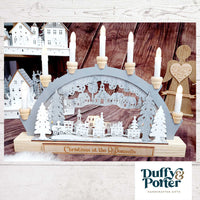 This piece depicts a beautiful Christmas scene which is also up-lit with LED bulbs.