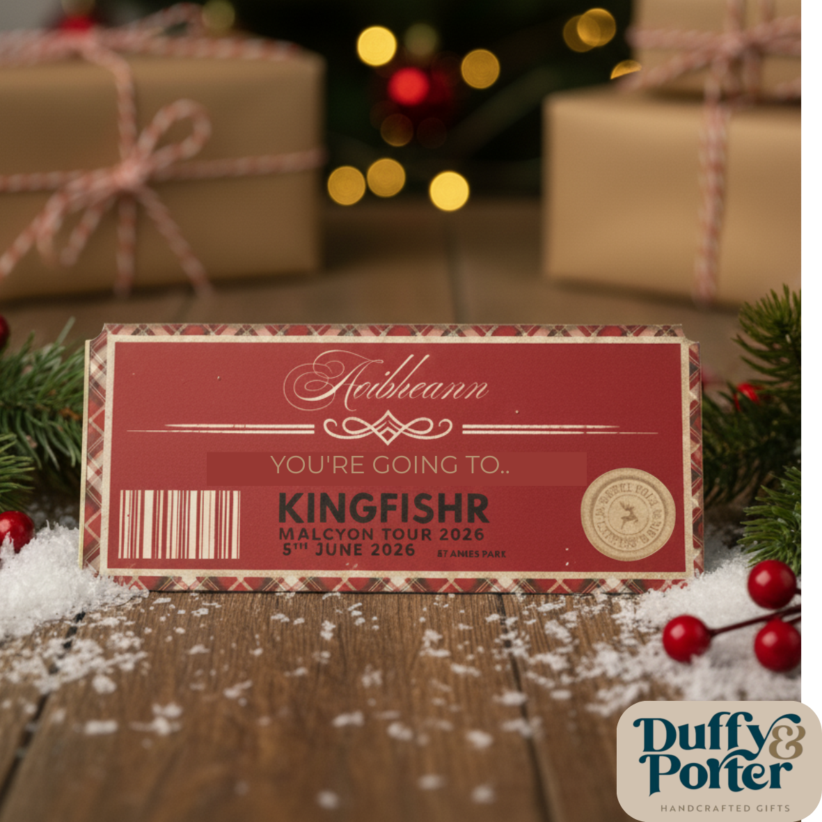 Available in a generous 77 × 180 mm size, it’s perfect for Christmas morning, milestone birthdays, proposals, or just-because adventures. Designed and created in-house, each one is made to order with your chosen message and layout.