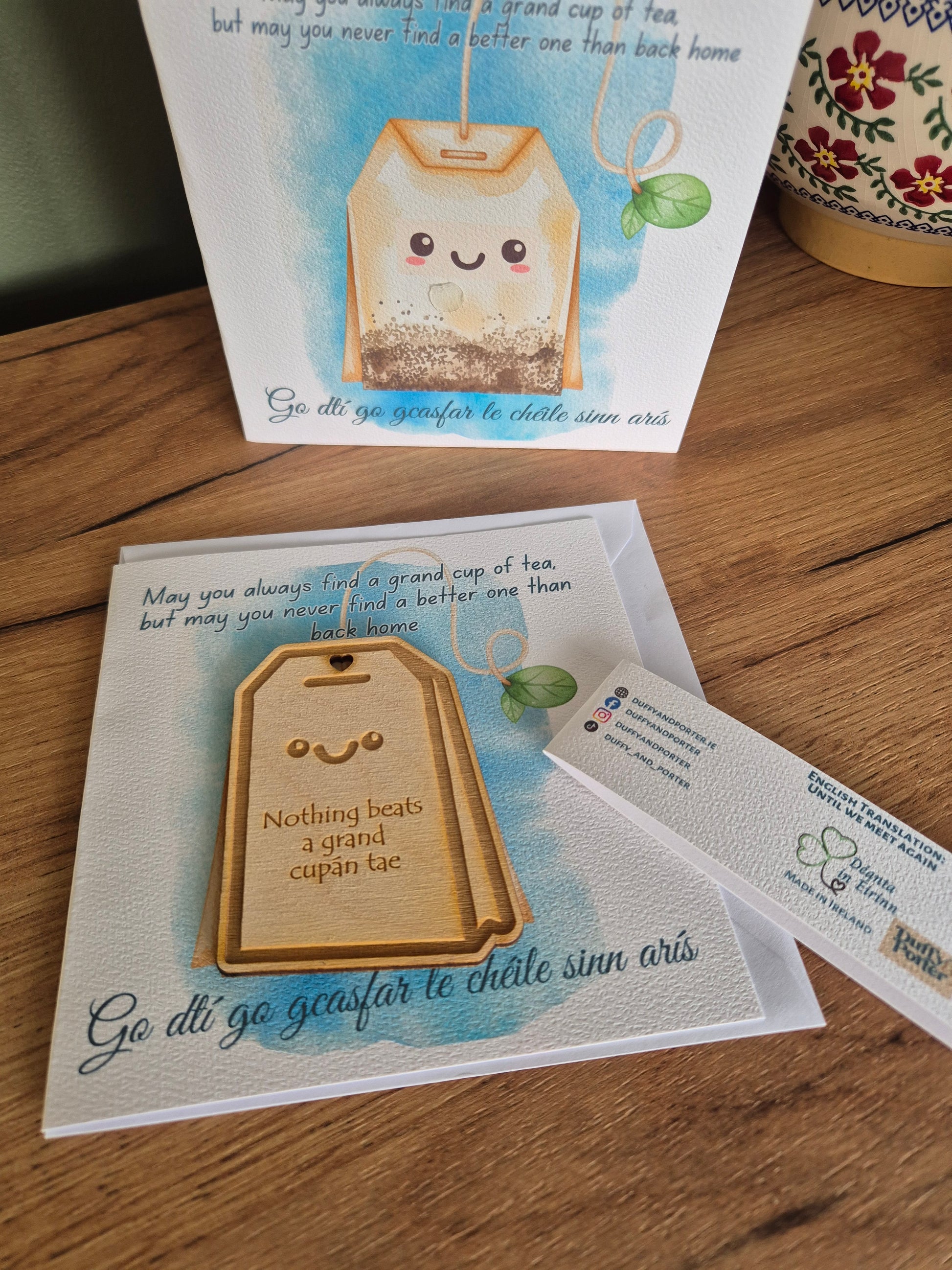 The Secret Reveal: Our signature design ensures that when the wooden token is removed, a hidden watercolor illustration is revealed underneath, alongside the Irish phrase "Le Grá" (With Love).