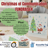 We are incredibly proud to announce that with every "Designed By Them" card pack sold, €5 will be donated directly to Finding Charlie's Voice. This wonderful charity empowers children with complex communication needs and their families, ensuring every child can express themselves. Your purchase not only creates a cherished memento but also supports a truly vital cause this Christmas. Learn more about Finding Charlie's Voice [link to your blurb/charity page if available].