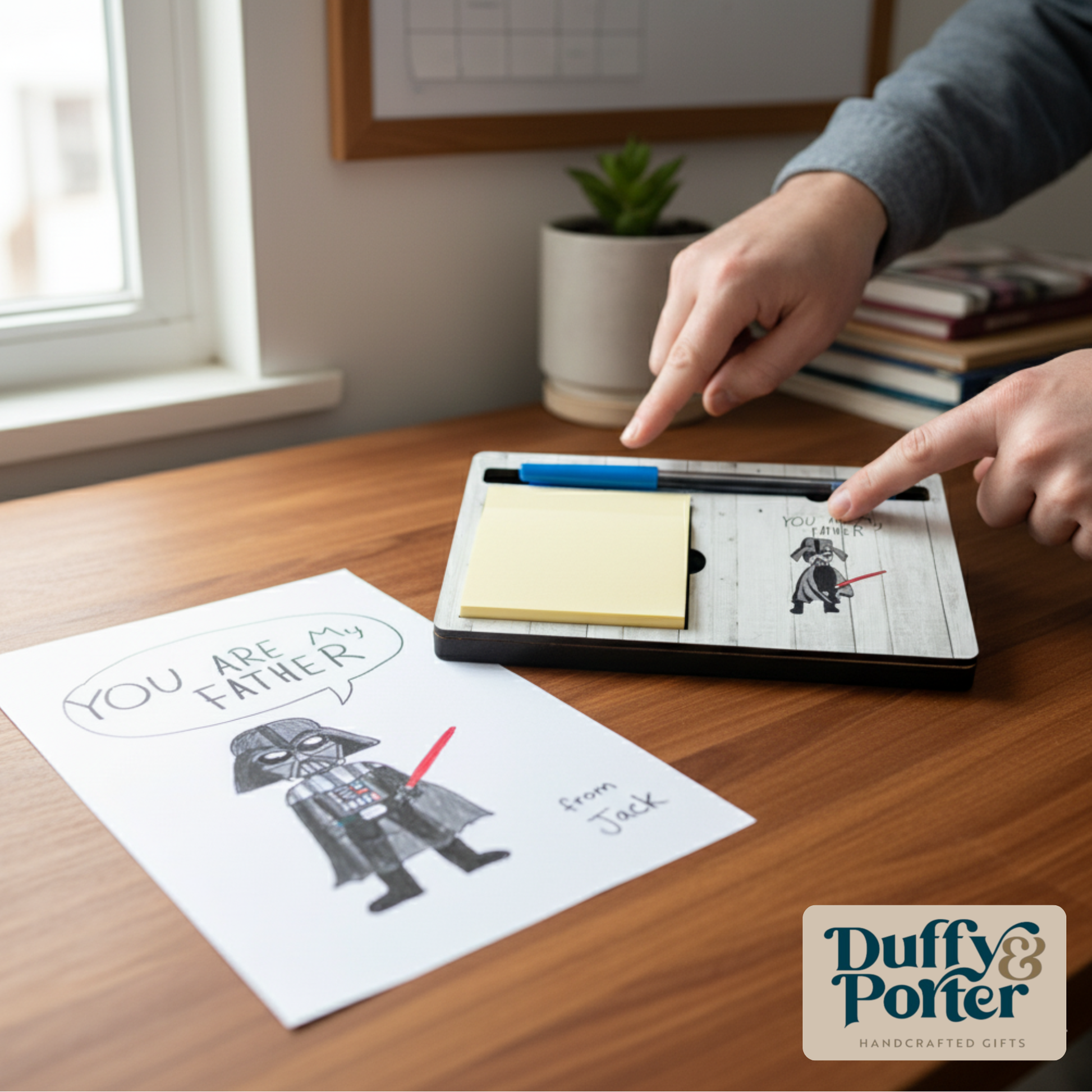 Something a little different for a gift or a really practical piece for yourself. Designed to fit standard sticky notes it comes with these tab notes and a pen as standard