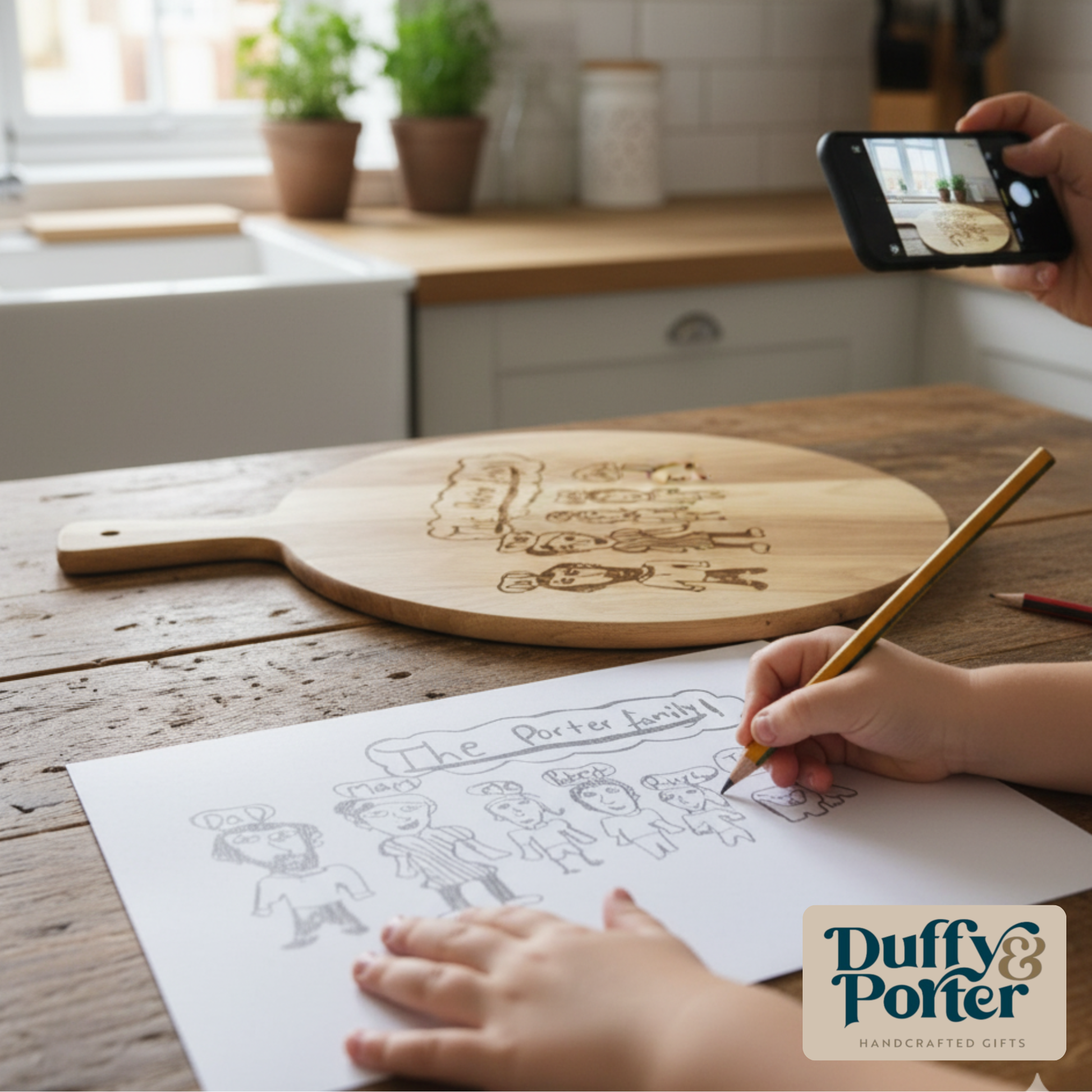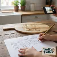 Introducing our **bespoke pizza boards**, lovingly crafted to capture the essence of cherished memories. These **personalised masterpieces** are more than mere kitchen accessories—they're **time capsules** that immortalise your child's creativity.