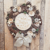 Measuring 36cm this Christmas wreath is packed full of pinecones, wooden pieces, stars and berries