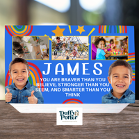 Choose bright, joyful photos that capture your child’s spirit—silly faces, proud moments, or quiet cuddles. This box is a celebration of them.