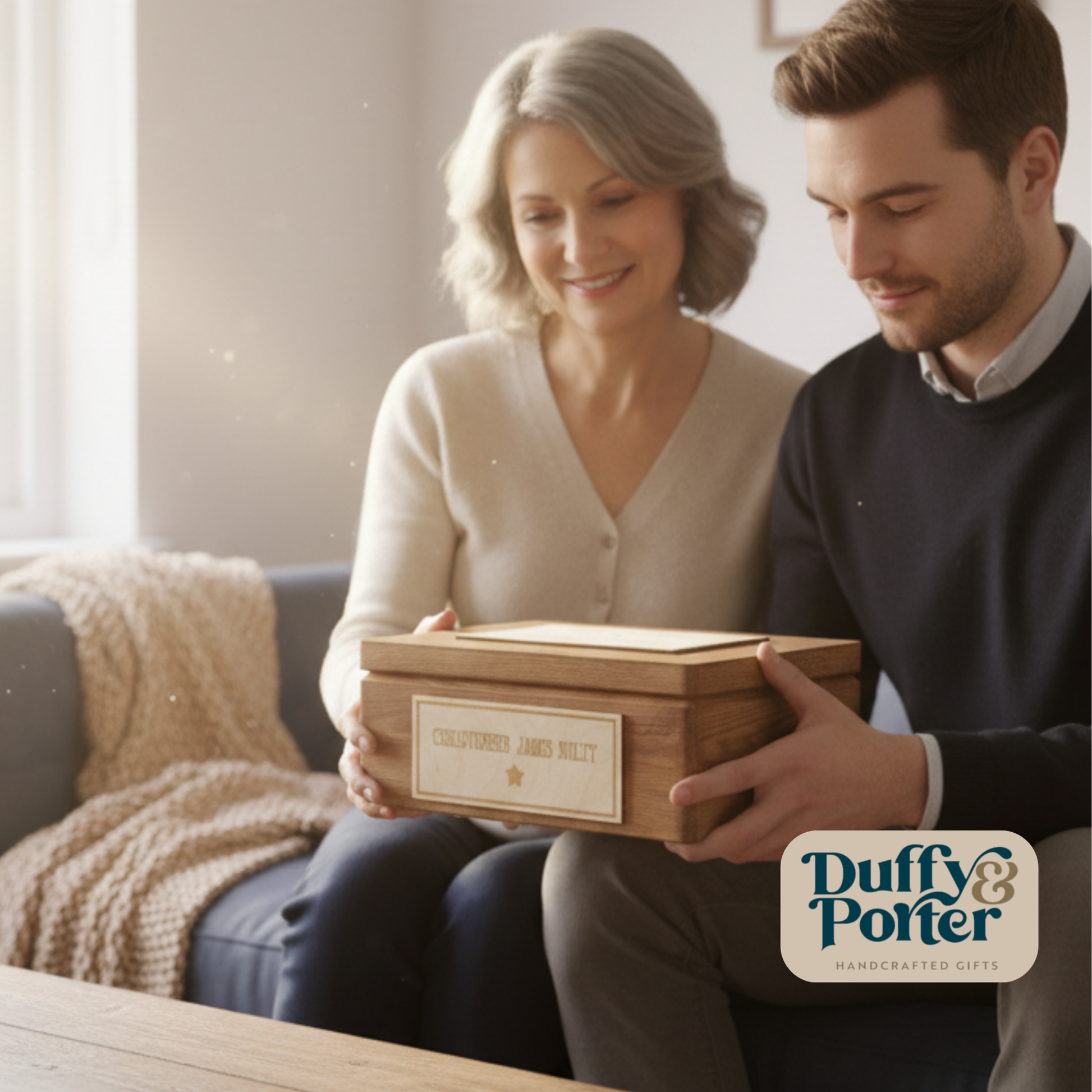 A beautiful keepsake box is the ideal gift for so many precious occasions. Lovingly chosen by you, carefully created by us here at Duffy and Porter. A keepsake box is truly a gift for all time and a safe space to keep those treasured memories and keepsakes