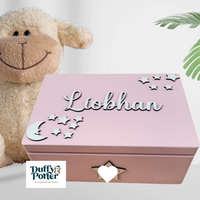 ✨ Solid pinewood and birch construction ✨ Hidden hinges and snug-fitting lid ✨ Rounded sides with soft bevelled detailing ✨ Hand-finished and personalised with love ✨ Ideal for baby gifts, christenings, or memory collections