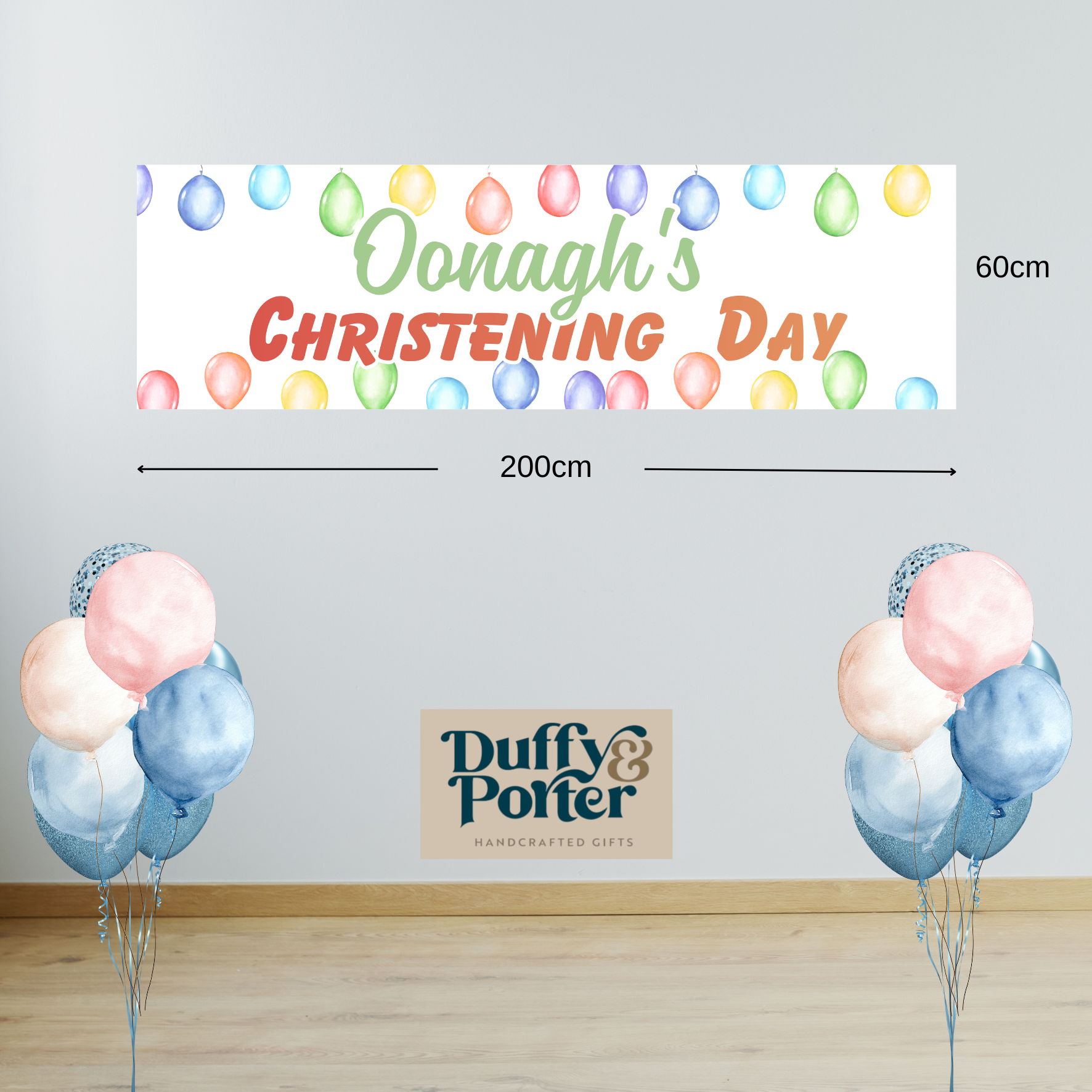 At Duffy & Porter, we believe that life’s biggest milestones deserve a backdrop as beautiful as the memories you’re creating. Our premium party banners combine bespoke Irish craftsmanship with a commitment to the environment. Designed and printed in our Wexford studio, these banners offer a sophisticated, plastic-free alternative to standard party decor.