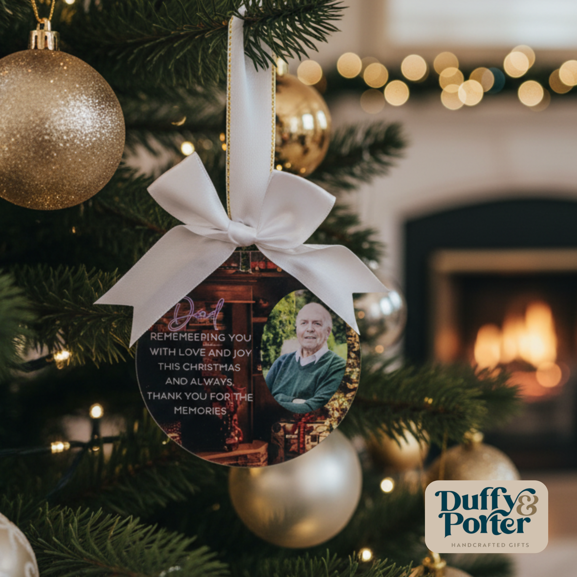 Our acrylic Memory Tree Decoration is thoughtfully designed to provide a heartfelt tribute to those who are no longer with us. This unique keepsake includes a cherished photo of your loved one, a personalised name, and a blank space where you can write your own heartfelt message to your loved one.
