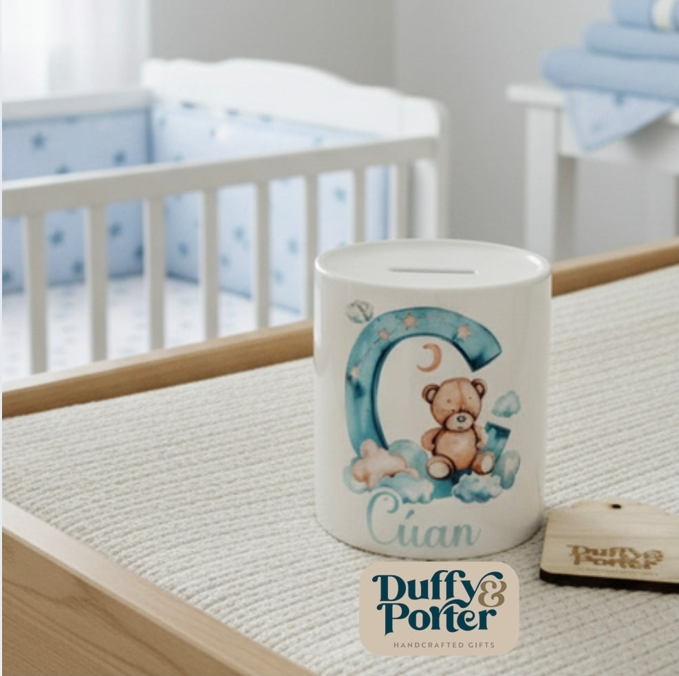 Introducing the **Duffy and Porter Ceramic Money Box**: a delightful gift that sparks financial awareness in children! 🎁 Crafted with care, this personalised ceramic money pot encourages saving for special occasions, rainy days, or that much-needed purchase. Unlike traditional piggy banks, it features a stopper, ensuring your box remains safe while emptying and filling. Plus, the convenient rubber plunger at the bottom makes filling and emptying a breeze. Start a savings adventure today!