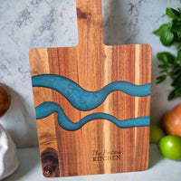 Add a touch of elegance to your entertaining with this handcrafted acacia and resin charcuterie board, measuring 25x35cm and featuring a practical handle for effortless serving. Expertly crafted from natural acacia wood and vibrant food-safe resin, each board is a unique statement piece that combines beauty with functionality.