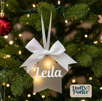 ✨ Frosted 3mm acrylic ✨ Personalised with name ✨ Choice of bow colours ✨ Made in Bunclody, Ireland ✨ Presented on a festive card