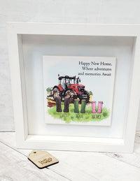 Discover the enchanting charm of the Duffy & Porter Family Frame – a bespoke and heartwarming addition to any home. This exquisite piece showcases a delicately rendered watercolour illustration of a timeless tractor, available in a selection of classic hues: a lush British racing green, a rich, ruby red, or a tranquil navy blue. Each tractor is delightfully complemented by wellington boots, whimsically personalised with your family’s names, representing the shared journey and enduring bonds of your lineage.