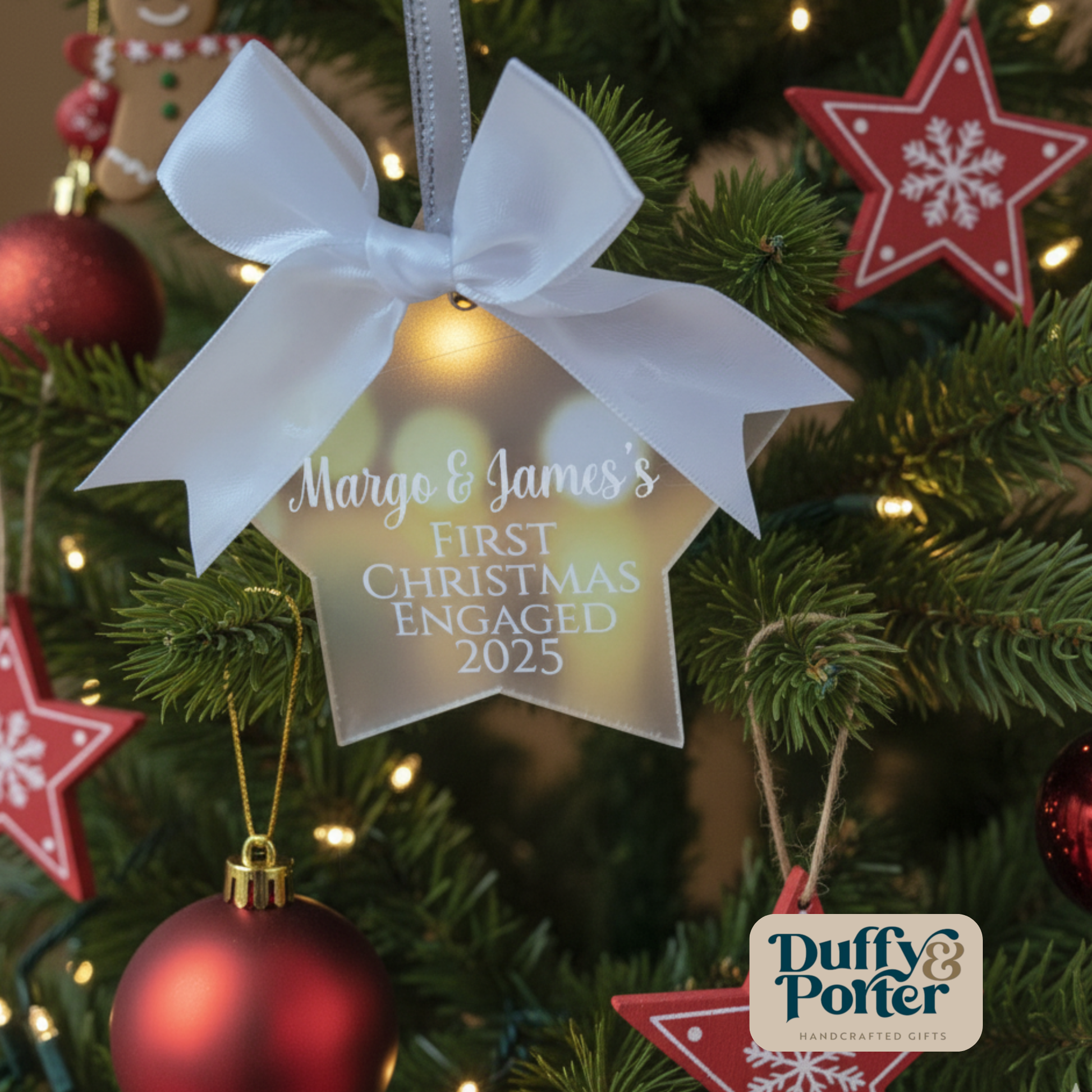 Celebrate your first Christmas as a married couple with this elegant acrylic star, proudly crafted in Bunclody by Duffy & Porter. Made from frosted 3mm acrylic, it catches the light beautifully and adds a soft sparkle to your festive décor.