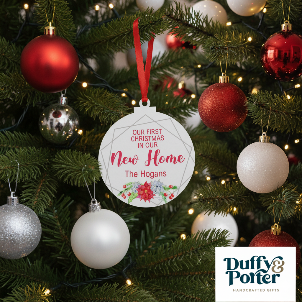 Our Duffy and Porter Personalised Acrylic bauble selection is created on a 10cm Acrylic base which is also created in house.