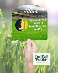 Honour the memory of your loved ones with Duffy and Porter's personalised acrylic grave spike. This beautiful and durable piece features a cherished photo of your loved one alongside a touching poem, making it a lasting tribute that will withstand the elements.