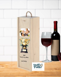 Introducing the **Picture Keepsake Wine Box** – your go-to choice for a thoughtful and elegant gift. Made with precision in the picturesque town of Bunclody, each box is constructed from high-quality wood, ensuring strength and a classic appeal. The highlight is the customisable photographic artwork on the lid, allowing you to capture a moment or memory, making it an ideal present for weddings, anniversaries, or any special milestone.