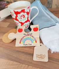 Duffy and Porter’s wooden jigsaw shaped coaster is an ideal gift for teachers after a long school year. It is colourfully printed with a rainbow and apples and says “Thank you for being a piece of my life”. The coaster is personalised and made in Ireland using Irish sourced materials by Duffy and Porter, a brand centred around family and thoughtful giftsThere's something so bright and happy about a rainbow, What a lovely way to thank a teacher of Minder, SNA or school secretary for all that they do.