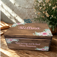 Each box created in Duffy and Porter is carefully painted or stained and sanded to a beautiful finish and finished off with highly personalised details of the bundle of joy, capturing each special detail of the happy arrival.
