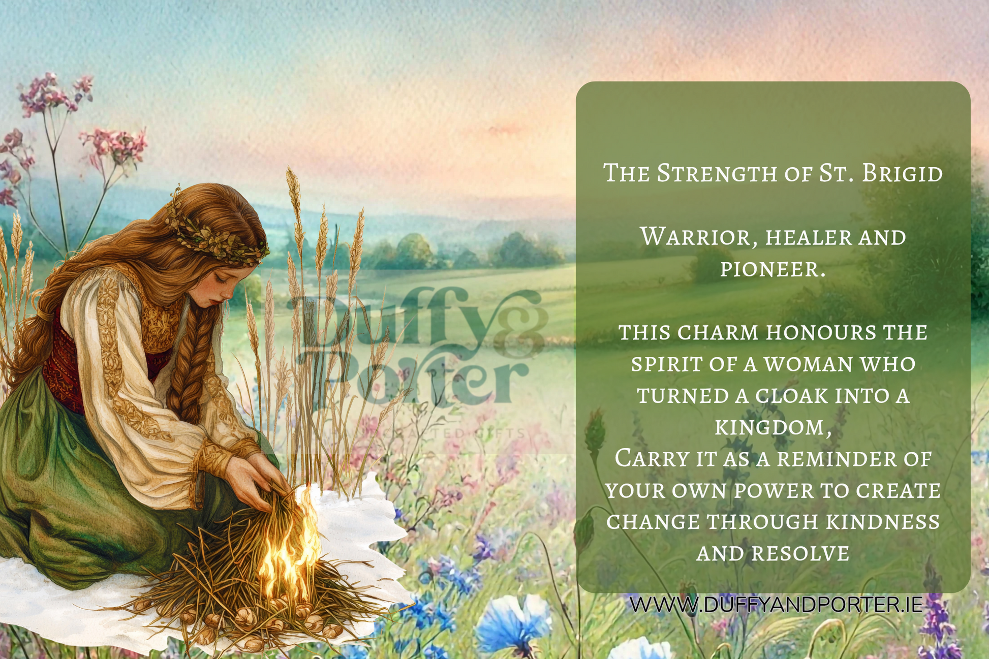 Packaging: Comes with a beautifully designed story card explaining the strength of St. Brigid.