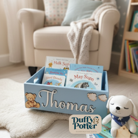 Our open-topped toy and book boxes are designed to hold all those beautiful storybooks, allowing your child to select their perfect bedtime tale or daytime adventure with ease. Neatly stored and always within reach, this piece invites little ones into the world of books—sparked by the thrill of seeing their own name engraved on the front.