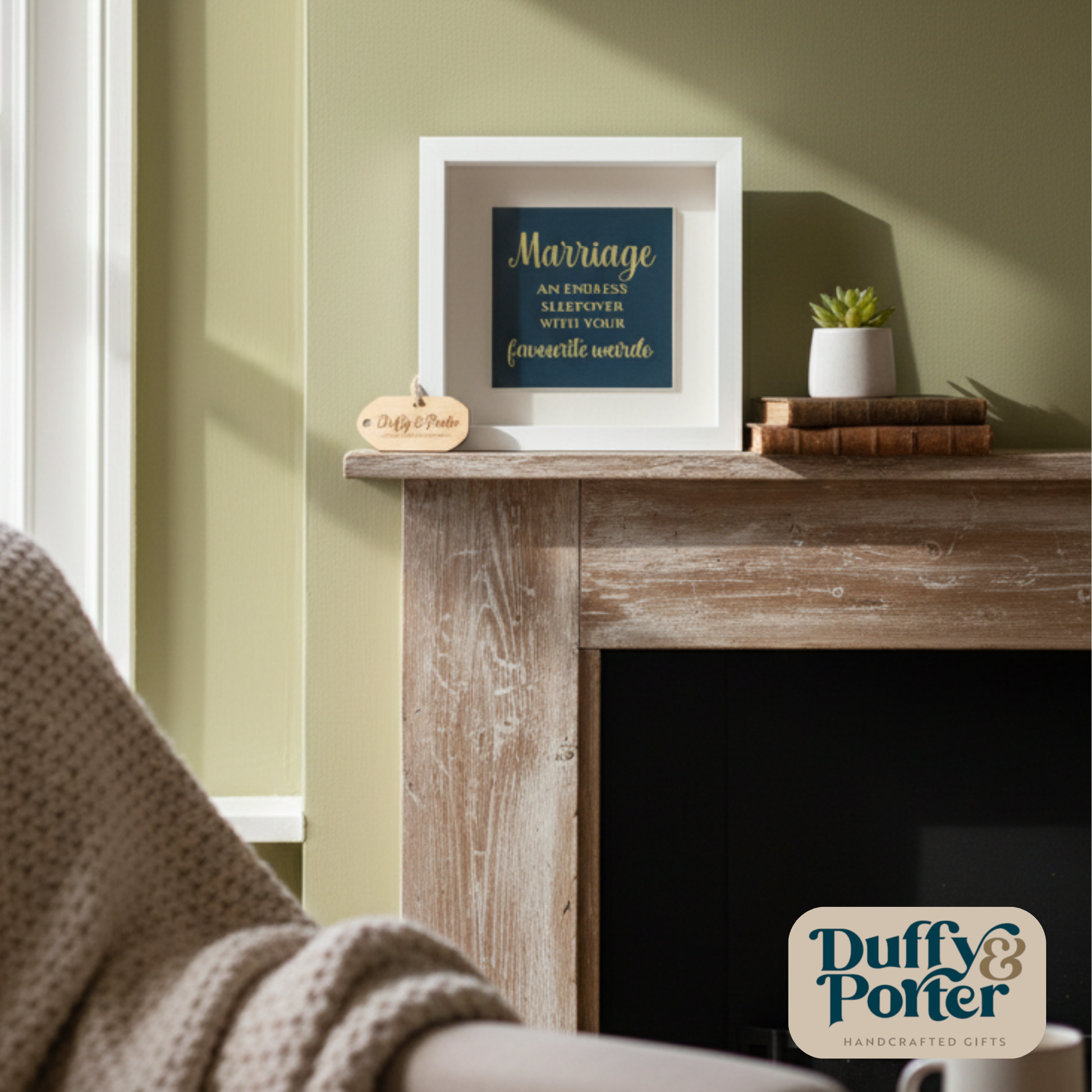 Our frame collection is no different, they are created in house and mounted in Irish made solid wood frames. They are encased in a Glass front. Measuring approx 235x235mm they are ideal for hanging or sitting simply on a shelf.